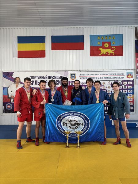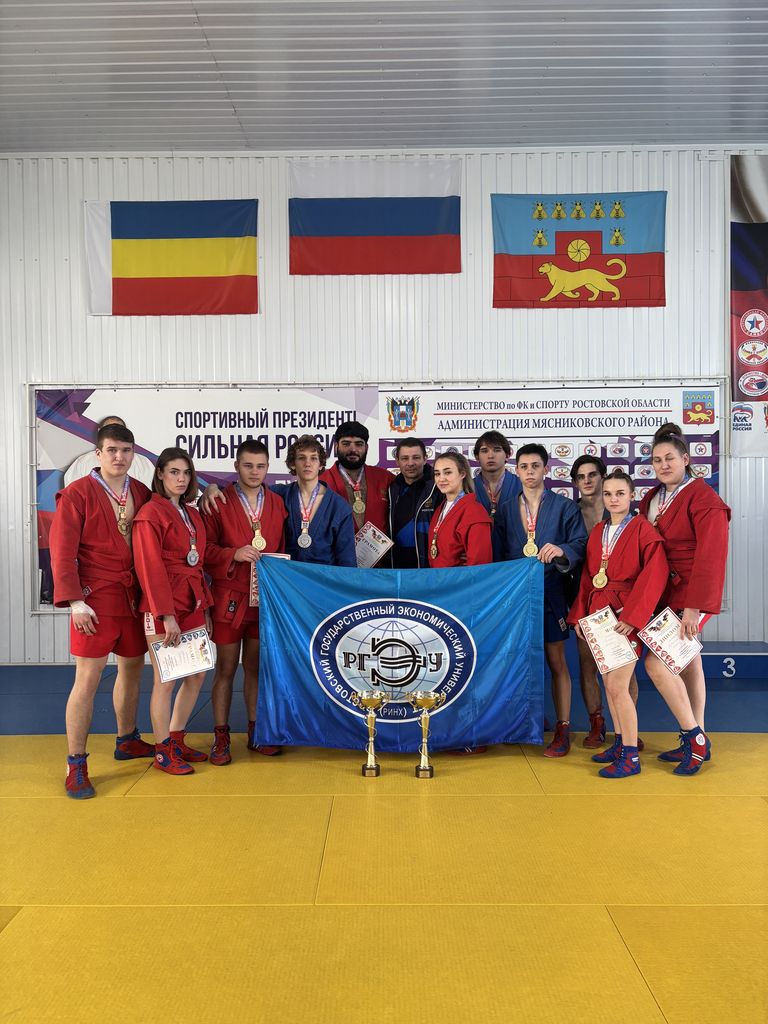 Новости все 05 марта, 2026 Чемпионат Ростовской области по самбо среди студентовС 27 февраля по 1 марта состоялся Чемпионат Ростовской области по самбо среди студентов. В соревнованиях приняли участие сильнейшие студенческие сборные вузов области. В составе сборной команды РГЭУ (РИНХ) отлично выступили наши спортсмены, завоевав 7 золотых, 4 серебряных и 1 бронзовую медаль соревнований! В общекомандном первенстве сборная Университета заняла 1 место! Александр Жирнов (ФПиСП) – 1 место, в/к до 58 кг; Даниил Перепелицын (ФЭиП) – 2 место, в/к до 64 кг; Дмитрий Олейников (ФФМИ) – 1 место, в/к до 79 кг; Алексей Решетников (ФПиСП) – 1 место, в/к до 88 кг; Константин Кулешов (ФФМИ) – 3 место, в/к до 98 кг; Алексей Бабасев (ФЭиП) – 1 место, в/к св. 98 кг; Ульяна Батырь (ФИиФ) – 1 место, в/к до 47 кг; Светлана Субботина (ФПиСП) – 2 место, в/к до 59 кг; Елизавета Лермонтова (ФФМИ) – 2 место, в/к до 65 кг; Арина Рощевская (ФПиСП) – 1 место, в/к до 72 кг; Нина Изварина (ФФМИ) – 1 место, в/к св. 80 кг. Поздравляем наших спортсменов и тренера команды Константина Чайкина! |