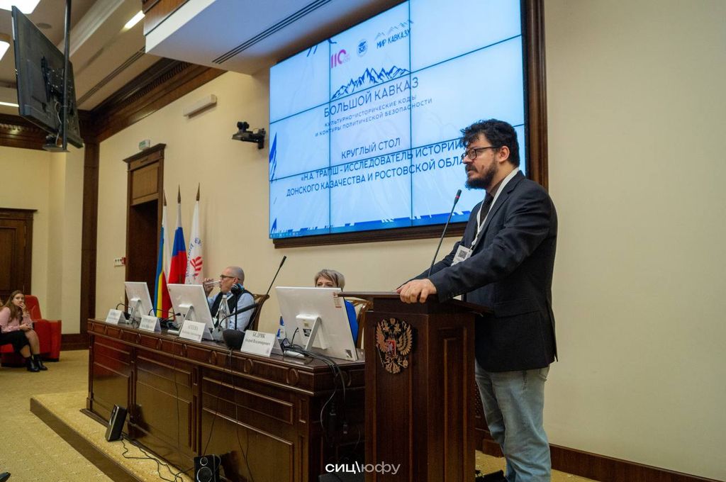 Новости все 05 декабря, 2025 Форум «Большой Кавказ: культурно-политические коды и контуры безопасности», посвященный памяти и сохранению наследия Николая Алексеевича ТрапшаВ Южном федеральном университете прошёл XVII Всероссийский научно-практический форум «Большой Кавказ: культурно-политические коды и контуры безопасности», организованный в рамках молодёжного проекта «Мир Кавказу». Форум был посвящён памяти и сохранению наследия Николая Алексеевича Трапша – выдающегося учёного-кавказоведа, кандидата исторических наук, доцента, бессменного руководителя Центра исследований Большого Кавказа Института социологии и регионоведения Южного федерального университета. Первый день форума завершился мемориальным круглым столом «Н.А. Трапш – исследователь истории Донского казачества и Ростовской области». К участникам обратился директор Института социологии и регионоведения ЮФУ, канд. соц. наук Андрей Владимирович Бедрик. С 2017 года Николай Алексеевич по совместительству работал доцентом на кафедре истории Таганрогского института имени А.П. Чехова (филиала) РГЭУ (РИНХ) и занимал исключительно важное место в развитии исторического образования города Таганрога. Заместитель директора по научной работе и проектной деятельности ТИ имени А.П. Чехова (филиала) РГЭУ (РИНХ), канд. ист. наук А.А. Волвенко и декан факультета истории и филологии, канд. ист. наук В.А. Агеева в своих выступлениях подчеркнули значение научной деятельности Н.А. Трапша в области исторического просвещения, подготовки научно-педагогических кадров и изучения истории казачества и Донского края. Многогранен вклад Н.А. Трапша и как историка, и как архивиста в сохранение исторической памяти о Великой Отечественной войне. Одним из значимых результатов стало его участие в реализации на площадке факультета истории и филологии гранта Российского научного фонда «Перемещение советских граждан на принудительные работы в нацистскую Германию (1941–1943 гг.): база данных и интерактивная карта (на материалах Ростовской области)». С воспоминаниями и анализом научного наследия Николая Алексеевича Трапша выступили заведующий научной лабораторией «Междисциплинарные исследования безопасности в регионе Большого Кавказа и Ближнего Востока» ИСиР ЮФУ, канд. ист. наук А.Ю. Перетятько; ведущий научный сотрудник Института международных исследований МГИМО-Университет МИД РФ, канд. ист. наук С.М. Маркедонов. Коллеги из Северо-Кавказского федерального университета представили видеоролик о взаимодействии с Николаем Алексеевичем в научном и образовательном пространстве. |