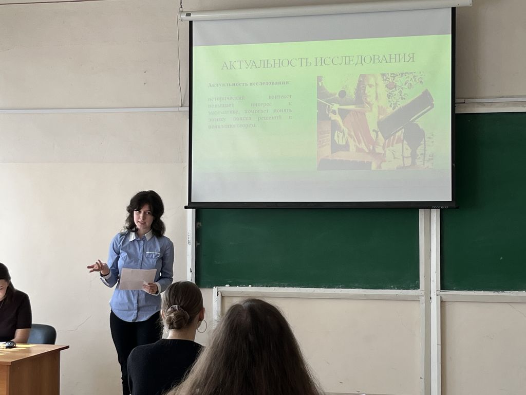 Новости все 14 апреля, 2026 Участие студентов групп НК9-711 и ФК9-711 в 69-й внутривузовской студенческой научной конференции9 апреля в рамках проведения 69-й внутривузовской студенческой научной конференции состоялось заседание секции «Первые шаги в науку. Математика», на котором студенты групп НК9-711 и ФК9-711 представили доклады, подготовленные под руководством доцента кафедры математики и физики И. В. Яковенко и заведующей лабораторией кафедры математики и физики А. Н. Плотниковой. Тематика докладов охватывала вопросы профильного обучения студентов, но в обязательной связи с математикой. Так, были рассмотрены вопросы доказательств великих теорем и открытий чисел, методики обучения учащихся младших классов, финансовой грамотности студентов СПО, правила расчёта питания спортсменов и включения геометрических элементов в спортивные программы. По итогам секции были определены призовые места: 1 место – Теремшонок Ирина, гр. НК9-711, научный руководитель И. В. Яковенко; 2 место – Труфанова Вероника, гр. ФК9-711, научный руководитель А. Н. Плотникова; 3 место – Поленцова Александра, гр. НК9-711, научный руководитель И. В. Яковенко. Все участники конференции получили памятные грамоты. Поздравляем студентов групп НК9-711 и ФК9-711 и желаем успехов в следующих научных мероприятиях! |