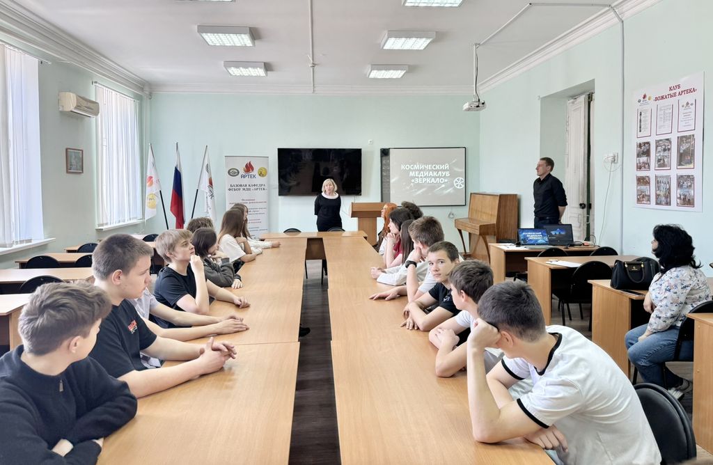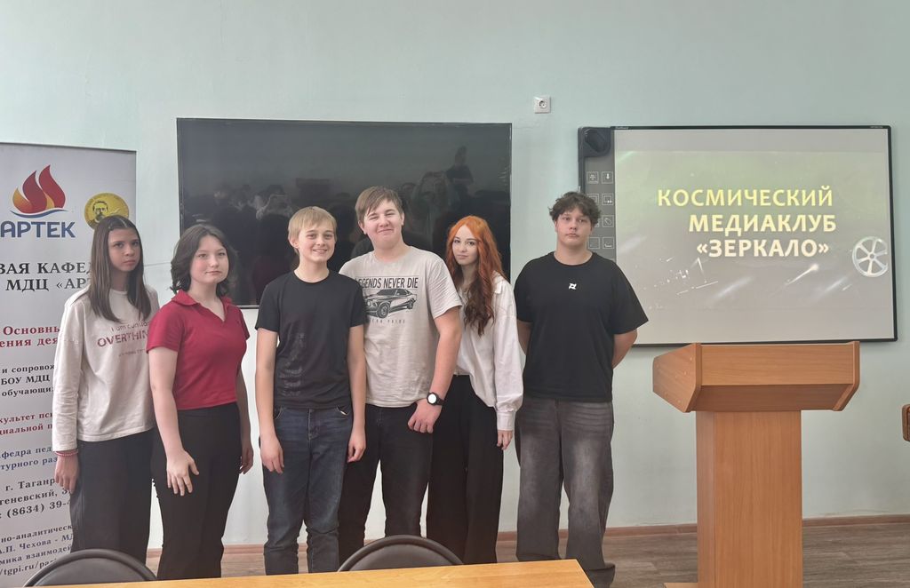 13 апреля 2026 года на кафедре психолого-педагогического образования и медиакоммуникации состоялось очередное заседание медиаклуба «Зеркало» с участием старшеклассников МОБУ СОШ №31 г. Таганрога. Встреча была посвящена празднованию Дня космонавтики. Медиаклуб провели заведующий кафедрой И. В. Челышева, ассистент Е. М. Купарева, магистрант В. М. Карась при участии зам. Декана по УР Л.И.Кобышевой. В ходе заседания присутствующие приняли активное участие в викторине, посвященной истории российской космонавтики, посмотрели и обсудили документальный фильм «Звезда по имени Гагарин» (реж. А. Филимонова и Л. Снигирева, 2014 г.). На следующем этапе занятия участники занимались проектной деятельностью, в ходе которой им предстояло найти и представить визуальный и текстовый медиаконтент о первом космонавте Ю. А. Гагарине. Проекты школьников получились очень познавательными и вызвали живой интерес у всех присутствующих. Кафедра психолого-педагогического образования и медиакоммуникации благодарит руководство, педагогический состав и старшеклассников МОБУ СОШ №31 за активное участие в работе медиаклуба и надеется на дальнейшее плодотворное сотрудничество! |