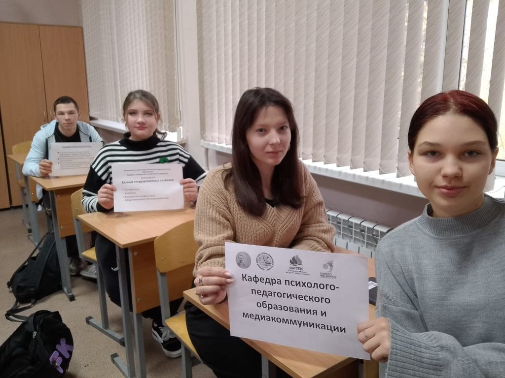Новости все 24 февраля, 2026 Профориентационная работа кафедры психолого-педагогического образования и медиакоммуникации продолжаетсяПреподаватели кафедры психолого-педагогического образования и медиакоммуникации продолжают профориентационные встречи с выпускниками школ Таганрога и Ростовской области. 18 февраля 2026 года доцент кафедры Н. В. Фоменко провела очередное мероприятие для учащихся 9-11-х классов в МОБУ лицее № 7. Лицеисты познакомились с направлениями подготовки, реализуемыми на факультете психологии и социальной педагогики, и подробнее узнали о деятельности кафедры психолого-педагогического образования и медиакоммуникации. Старшеклассникам рассказали, какие экзамены в формате ЕГЭ необходимо сдавать для поступления на факультет. Н. В.Фоменко описала учебные будни и культурную жизнь кафедры, а также пригласила школьников продолжить обучение в Таганрогском институте имени А. П. Чехова. |