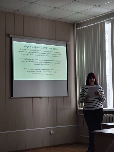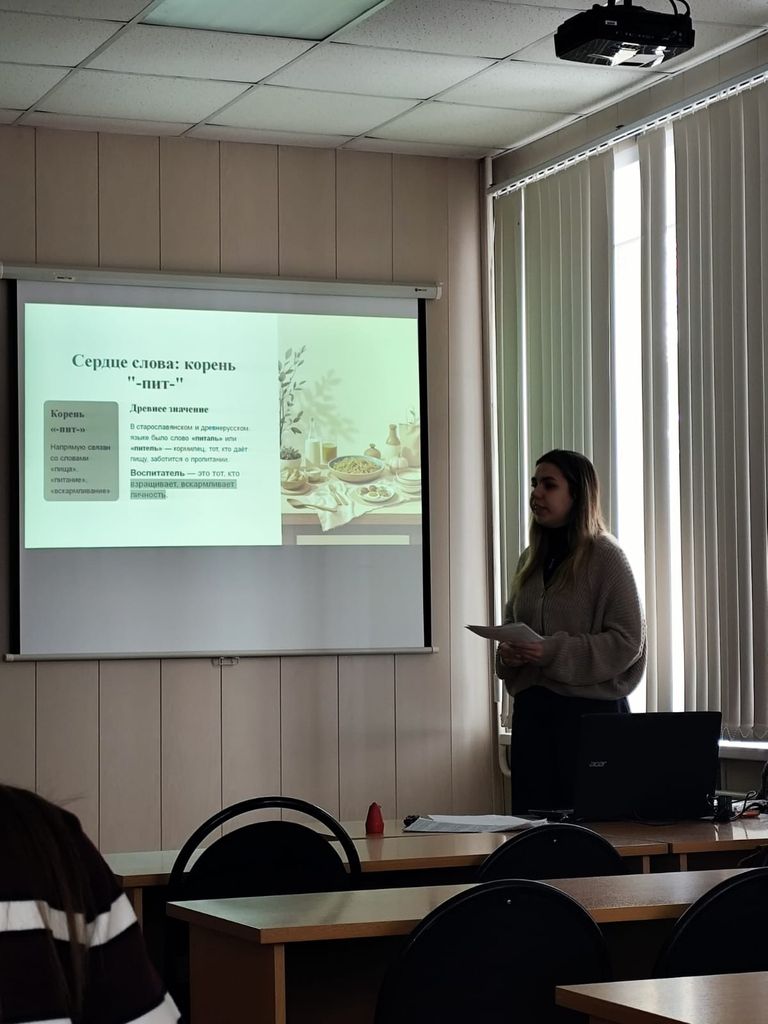 Познавательное мероприятие «Загадки слов» ко Дню российской науки на факультете ПиМДНиДО10 февраля в рамках декады науки на факультете педагогики и методики дошкольного, начального и дополнительного образования состоялось познавательное мероприятие «Загадки слов». Открыла встречу профессор кафедры русского языка, культуры и коррекции речи Вероника Георгиевна Семенова. Она рассказала об истории Дня российской науки и о современных достижениях в этой области. Затем ведущая мероприятия Валерия Куликова поприветствовала участников и познакомила их с интересными фактами, связанными с происхождением слов. Основную часть программы продолжили студенты группы НДО-451. Каждый из них подготовил мини-исследование об этимологии того или иного слова. Перед аудиторией выступили: Ульяна Кравцова с докладом об истории слова школа; Виктория Баранова – учитель; Виктория Лопырева – компас; Нонна Мирошниченко – воспитатель; Валентина Гречишена – ностальгия; Анастасия Палий – перчатка; Елена Доткова – врач; Алина Сергиенко – время; Анна Тороп – оглобля; Полина Оленченко – радуга; Елизавета Ревякина и Екатерина Духтик – семья; Алина Новак – блин; Устинья Цветкова – праздник. Во второй части мероприятия участники дискуссии размышляли о том, почему те или иные предметы и явления называются именно так, а не иначе, и делились своими впечатлениями и открытиями. Валерия Куликова подготовила для гостей «волшебный мешочек»: каждый вытянул карточку со словом и попробовал увлекательно рассказать историю его происхождения. Все участники отметили важность изучения языка, ведь за каждым словом скрывается живая история народа, его традиции и многовековая культура. Каждое слово в словаре – это маленькая частица драгоценного народного опыта, его прошлое и настоящее. Мероприятие оказалось не только познавательным, но и полезным: оно позволило студентам расширить свой лингвистический кругозор и по-новому взглянуть на привычные понятия. |