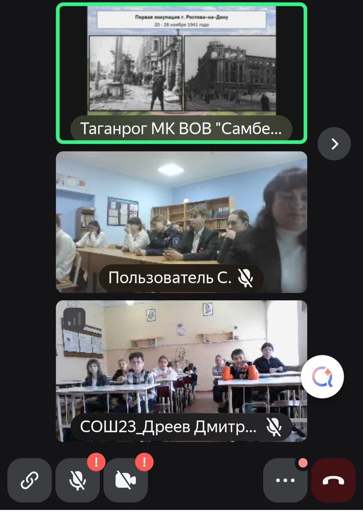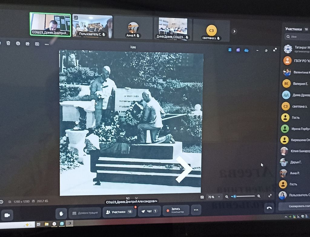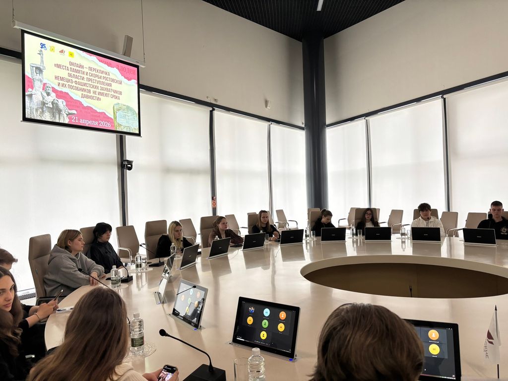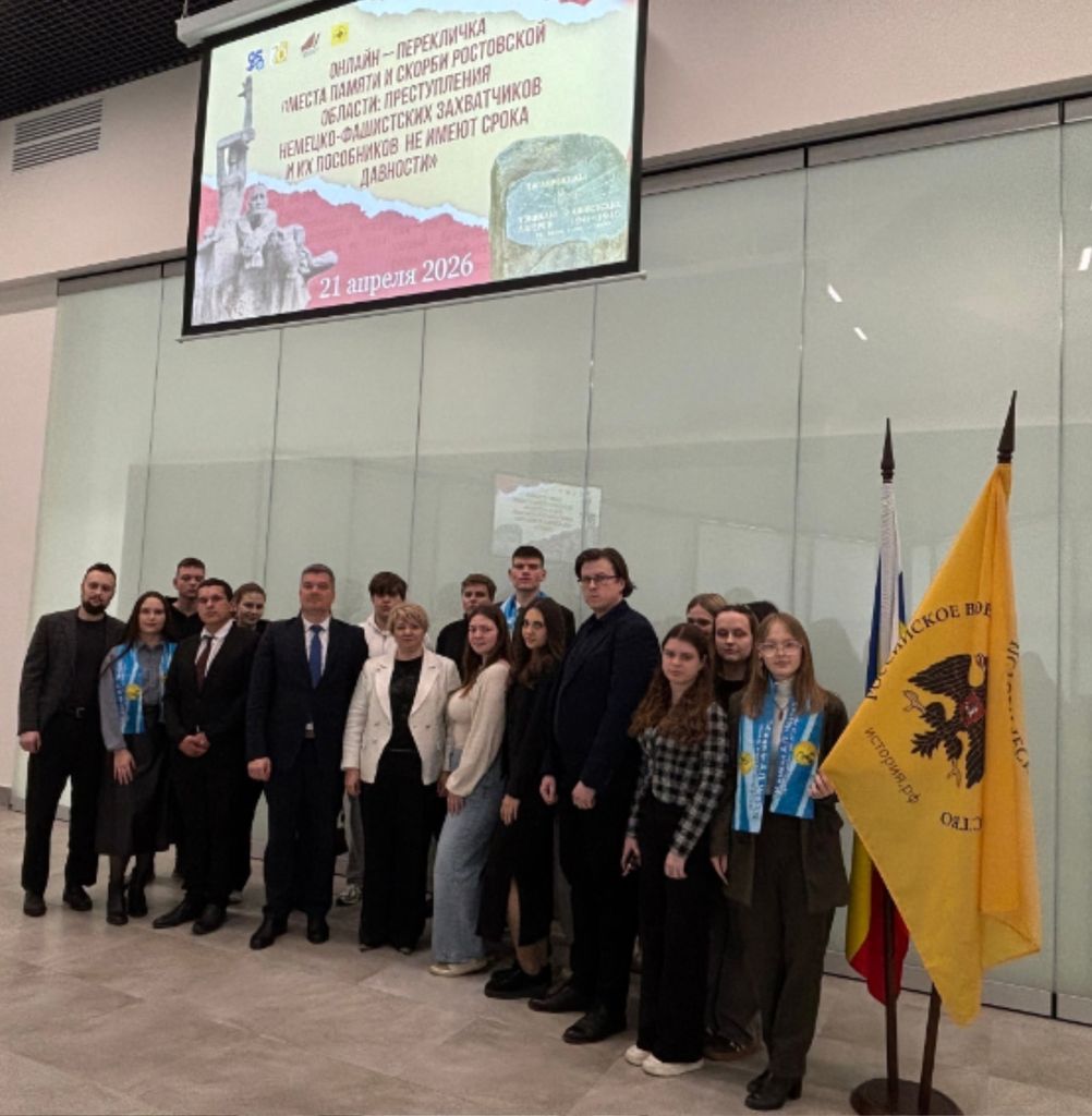 Новости все 27 апреля, 2026 Онлайн-перекличка «Места памяти и скорби Ростовской области: преступления немецко-фашистских захватчиков и их пособников не имеют срока давности»В рамках мероприятий, приуроченных к 19 апреля – Дню памяти жертв геноцида советского народа, совершённого нацистами и их пособниками в период Великой Отечественной войны 1941–1945 годов, на площадке Народного военно-исторического музейного комплекса Великой Отечественной войны «Самбекские высоты» состоялась онлайн-перекличка «Места памяти и скорби Ростовской области: преступления немецко-фашистских захватчиков и их пособников не имеют срока давности». Соорганизаторами мероприятия стали факультет истории и филологии Таганрогского института имени А.П. Чехова (филиала) РГЭУ (РИНХ), Народный военно-исторический музейный комплекс «Самбекские высоты» и Российское военно-историческое общество. Участниками онлайн-переклички стали обучающиеся общеобразовательных школ, казачьих кадетских корпусов, студенты, педагоги, музейные сотрудники городов и районов Ростовской области. Модераторами акции выступили: директор Народного военно-исторического музейного комплекса Великой Отечественной войны «Самбекские высоты» А.Ю. Данильченко и декан факультета истории и филологии, кандидат исторических наук, доцент В.А. Агеева. На площадке был просмотрен документальный фильм «Ангелы Победы», посвящённый юным подпольщикам города Каменска-Шахтинского. К участникам онлайн-переклички обратилась режиссёр картины А.В. Родионова. В программу вошли виртуальные экскурсии по местам памяти и скорби Дона, связанных с преступлениями немецко-фашистских захватчиков и их пособников в годы войны: – «Шахта имени Л.Б. Красина: от места казней до мемориального комплекса» – спикер: учитель истории и обществознания МБОУ СОШ № 23 г. Шахты Д.А. Дреев; – «Увековечивание памяти жертв немецко-фашистской оккупации в Змиёвской балке города Ростова-на-Дону» – спикер: старший преподаватель кафедры истории ТИ имени А.П. Чехова (филиала) РГЭУ (РИНХ) В.А. Смирнов; – «Памятник на месте расстрела мирных жителей и военнопленных в Луневой балке (село Песчанокопское)» – спикер: студент факультета истории и филологии ТИ имени А.П. Чехова (филиала) РГЭУ (РИНХ) С.А. Лозовский. О мемориале в Петрушинской балке, памятнике «Безымянным жертвам фашизма» на территории гимназического сквера у исторического здания Гимназии имени А.П. Чехова, памятнике таганрожцам, угнанным на принудительные работы в Германию, и других местах скорби города Таганрога представила виртуальную экскурсию В.А. Агеева. А.Ю. Данильченко особое внимание уделил вопросу сохранения памяти о жертвах немецко-фашистских захватчиков посредством практики мемориализации мест, связанных с этими трагическими событиями периода Великой Отечественной войны. В заключительной дискуссии со стороны МБОУ Большекрепинская СОШ имени Героя Советского Союза П.А. Пода выступила заместитель директора по воспитательной работе М.В. Статывка. В завершение мероприятия участники возложили цветы к памятнику «Советскому солдату-победителю». |