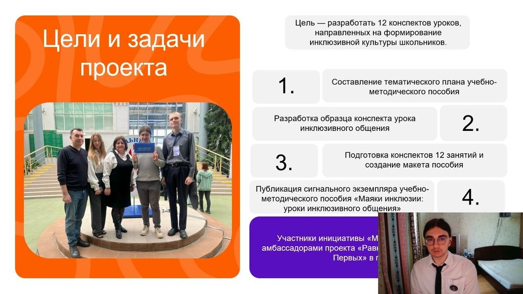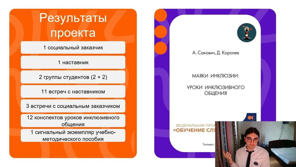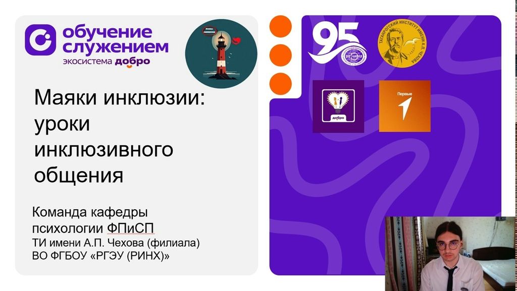 Новости все 27 апреля, 2026 Проект кафедры психологии «Маяки инклюзии»: экспертная сессия в рамках проектно-образовательного интенсива «Обучение служением»23 апреля 2026 года на площадке «Точки кипения» РГЭУ (РИНХ) состоялась экспертная сессия в рамках проектно-образовательного интенсива «Обучение служением», организованная руководителем Центра проектной деятельности РГЭУ (РИНХ) И.С. Федоренко. Программа «Обучение служением» стартовала в 2024 году в 415 университетах России. Она представляет собой образовательный подход, который подразумевает одновременное обучение студентов и выполнение работы для поддержки некоммерческих организаций-заказчиков. Экспертная сессия – ключевое мероприятие, предполагающее глубокий анализ и оценку представленных проектов. В рамках такой сессии эксперты детально рассматривают цели, задачи и социальную значимость каждой инициативы, а также изучают методологию, ожидаемые результаты и механизмы их достижения. Особое внимание уделяется практической реализуемости проектов, их соответствию реальным запросам общества и потенциалу для долгосрочного эффекта. В состав экспертов вошли: руководитель ЦПД И. Федоренко, программные директора «Точки кипения» Е. Кузьменкова и А. Лапоногова, молодёжный министр экономического развития Ростовской области К. Костромин. Проектные команды, подготовившие презентации своих инициатив, провели серьёзную двухмесячную работу на основе запросов социальных заказчиков, включающую проектные мероприятия, встречи с наставниками и социальными заказчиками. На экспертной сессии свой опыт проектной деятельности представила команда кафедры психологии ФПиСП под руководством доцента А.В. Макарова, реализовавшая социальный проект «Маяки инклюзии» на основе инициативы социального заказчика – Добро.Центра АНО «Луч Надежды». В рамках подготовки учебно-методического пособия «Маяки инклюзии: уроки инклюзивного общения» в состав команды вошли обучающиеся Д. Королев (гр. ПСХ-521) и А. Сакович (гр. ПСХ-521). Результаты данного проекта на экспертной сессии представлял Алексей Сакович, который подробно рассказал об этапах работы над проектом и продемонстрировал распечатанный сигнальный экземпляр учебно-методического пособия «Маяки инклюзии: уроки инклюзивного общения». Эксперты с интересом отнеслись к содержанию проекта и задали вопросы, касающиеся развития инклюзивной культуры подростков, включения инициативы в учебный план школ и другие темы. Алексей справился со всеми вопросами, продемонстрировав глубокое понимание темы и продуманность каждого этапа реализации. Текст учебно-методического пособия в настоящее время проходит этап доработки с учётом рекомендаций, полученных от экспертного сообщества, специалистов Таганрогского отделения «Движения Первых», а также преподавателей кафедры психологии. Совместная работа с представителями «Движения Первых» позволяет обеспечить соответствие содержания актуальным воспитательным задачам и методикам, а экспертиза психологов – сделать материалы максимально доступными, безопасными и эффективными для развития подростков. |