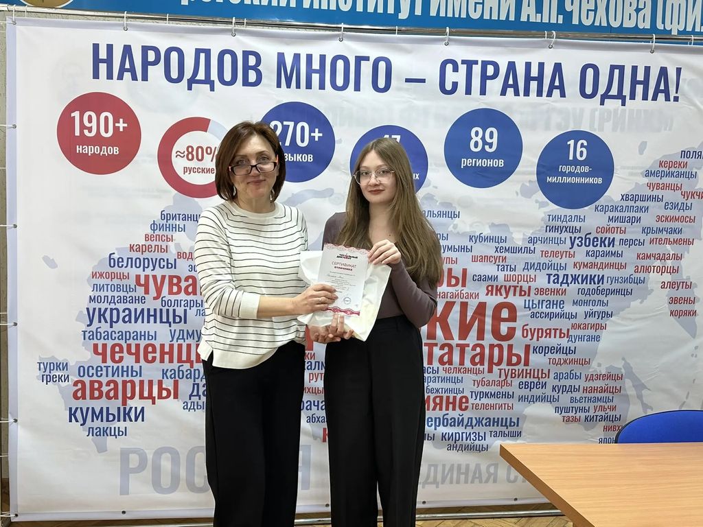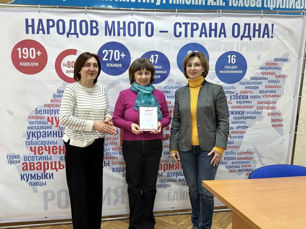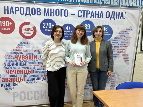 Новости все 27 апреля, 2026 В Таганрогском институте имени А.П. Чехова подвели итоги «Тотального диктанта» в городеНесмотря на ранний час субботы и холодный ветер в Таганроге, 25 апреля на ул. Инициативной, 48 собралось много участников акции «Тотальный диктант». Консультация, организованная на базе института, вызвала живой отклик у горожан. Тёплая атмосфера царила в аудитории с самого утра. Радует, что приходят семьями: взрослые приводили детей, в том числе самых маленьких участников проекта «Недиктант.Дети». Любовь к русскому языку оказалась сильнее непогоды. Все присутствующие получили сертификаты об участии в консультации. Отличники, которые показали блестящие результаты на диктанте, были отмечены дополнительно – они получили памятные подарки. Консультацию провела кандидат филологических наук, доцент, «диктатор Тотального диктанта» Наталья Алексеевна Гурдаева. Участников принимала городской координатор акции, заведующий кафедрой русского языка, культуры и коррекции речи, кандидат филологических наук, доцент Виктория Сергеевна Анохина. Институт имени А.П. Чехова выражает искреннюю благодарность за поддержку и предоставленные призы директору Светлане Анатольевне Петрушенко. Внимание руководства к просветительским проектам помогает делать русский язык ближе и интереснее для жителей Таганрога. Кафедра русского языка, культуры и коррекции речи благодарит всех участников за стойкость, интерес к родному слову и живое общение. Работа над ошибками |
