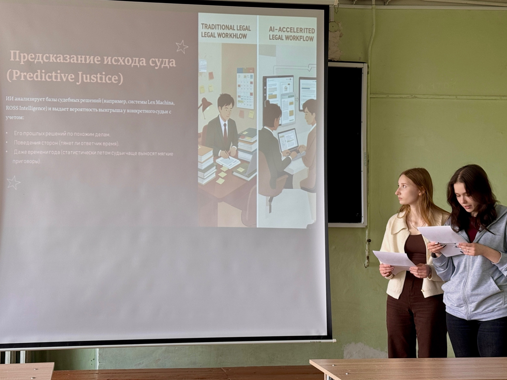 Новости все 28 апреля, 2026 Межфакультетское заседание СНК «Теоретико-правовые и философские исследования государственно-политических институтов» на тему «Искусственный интеллект в деятельности юриста»22 апреля 2026 года на факультете экономики и права заведующей кафедрой экономики и гуманитарно-правовых дисциплин Ю.А. Сердюковой и доцентом кафедры, куратором группы ЮР-611 В.А. Тимофеенко было организовано заседание СНК «Теоретико-правовые и философские исследования государственно-политических институтов» на тему «Искусственный интеллект в деятельности юриста». В заседании приняли участие студенты первого курса направления подготовки «Юриспруденция» (группа ЮР-611) и студенты факультета истории и филологии направления подготовки «История и обществознание» (группа ИО-211). С приветственным словом к участникам обратилась заведующая кафедрой экономики и гуманитарно-правовых дисциплин, кандидат юридических наук Ю.А. Сердюкова, отметив, что в современных условиях цифровизации всех сфер общественной жизни юристы всё больше доверяют в своей профессиональной деятельности российским нейросетям, так как искусственный интеллект сегодня – несомненный помощник в ежедневной юридической практике: он проверяет договоры, составляет иски и даже консультирует. Участники в ходе обсуждения привели примеры и ответили на следующие вопросы обсуждаемой темы: как искусственный интеллект меняет повседневную работу юриста? какие задачи в юридической практике можно автоматизировать с помощью ИИ, а какие останутся за человеком? каковы преимущества и риски использования ИИ для анализа судебной практики и подготовки правовых документов? может ли ИИ заменить юриста в будущем? какие этические вопросы возникают при использовании искусственного интеллекта в праве? В завершении участники приняли единогласную резолюцию о продолжении кружковой работы по данной теме в дальнейшем, так как она является актуальной в настоящее время и важной для профессиональной деятельности юриста. |