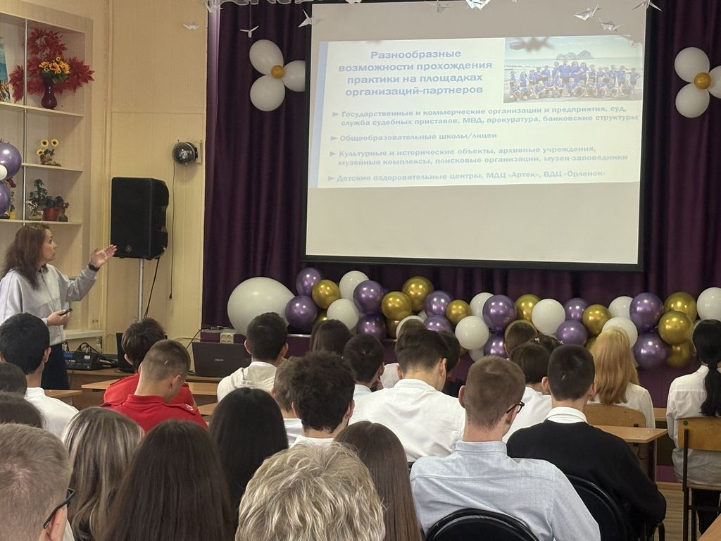 Новости все 28 апреля, 2026 Профориентационная деятельность кафедры отраслевых юридических дисциплин27 апреля 2026 года преподаватели кафедры отраслевых юридических дисциплин посетили Недвиговскую среднюю общеобразовательную школу № 16 и Калининскую среднюю общеобразовательную школу № 9. Заведующая кафедрой О.А. Курилкина и доцент кафедры С.И. Пономаренко подробно рассказали учащимся 9-х и 11-х классов о преимуществах и особенностях обучения в Таганрогском институте имени А.П. Чехова (филиале) ФГБОУ РГЭУ (РИНХ), о направлениях и профилях подготовки, реализуемых в Таганрогском институте имени А.П. Чехова, обратив внимание на возможность получения СПО по некоторым профилям. Особое внимание было уделено следующим профилям бакалавриата: – 40.03.01 направление «Юриспруденция»; – 38.03.02 «Менеджмент», профиль «Управление бизнес-процессами в цифровой экономике»; – 44.03.04 «Профессиональное обучение (по отраслям)», профиль «Экономика и управление организацией»; – 44.04.04 «Профессиональное обучение (по отраслям)», магистерская программа «Правоведение и правоохранительная деятельность». Учащиеся активно задавали вопросы о количестве бюджетных мест, стоимости обучения на внебюджетной основе, размере стипендии, формах социальной поддержки студентов, а также о внеучебной жизни студентов. |