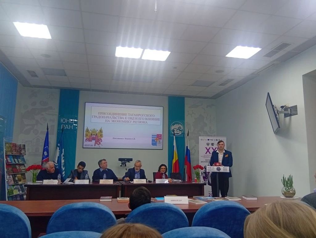 Новости все 28 апреля, 2026 Участие обучающихся факультета истории и филологии в ежегодной молодежной научной конференции Южного научного центра РАННа площадке Южного научного центра состоялась XXII Всероссийская ежегодная молодежная научная конференция с международным участием «Наука юга России: достижения и перспективы». В ней приняли участие обучающиеся кафедры истории – базовой кафедры ЮНЦ РАН – и выпускники факультета истории и филологии, а также аспиранты РГЭУ (РИНХ). Доклады прозвучали на секции «Историко-филологические науки», которая работала под председательством заместителя директора ЮНЦ РАН по научной работе, руководителя магистерской программы «Историческое образование» Таганрогского института имени А.П. Чехова (филиала) РГЭУ (РИНХ), доктора исторических наук Евгения Федоровича Кринко. Призёром второй степени стал студент 5 курса А.В. Асташев с докладом на тему «Немецкие лагеря для военнопленных на оккупированных территориях Ростовской области в годы Великой Отечественной войны в отечественных и зарубежных источниках» (научный руководитель – декан факультета истории и филологии, кандидат исторических наук В.А. Агеева). Третье место заняли: · выпускник факультета, аспирант Ростовского государственного экономического университета (РИНХ) А.Э. Джакели с докладом на тему «Экономическая эффективность иностранных хозяйственных коммун (на примере деятельности коммуны «Сеятель» в 1922–1941 гг.)» (научный руководитель – заведующий кафедрой исторических наук и политологии РГЭУ (РИНХ), доктор исторических наук, профессор В.В. Наухацкий); · студентка 5 курса М.А. Дмитриева с докладом на тему «Религиозный фактор в хозяйственном развитии немецкой колонии Сарепта-на-Волге (1765–1892 гг.)» (научный руководитель – научный сотрудник ЮНЦ РАН, доцент кафедры истории, кандидат исторических наук О.А. Гром). Промежуточные результаты исследовательской работы представили члены научной лаборатории «Казачество в истории и памяти» факультета истории и филологии, руководителем которой является заместитель директора по научной работе и проектной деятельности Таганрогского института имени А.П. Чехова (филиала) РГЭУ (РИНХ), кандидат исторических наук Алексей Александрович Волвенко: · магистрант Г.В. Чекунов с докладом на тему «Присоединение Таганрога к Области войска Донского и его значение в судьбе донского казачества»; · магистрант И.А. Волвенко с докладом на тему «Н.И. Краснов об экономическом кризисе коневодства в казачьих войсках во второй половине XIX в.». В работе конференции также приняли участие магистрант А.А. Асташев, аспиранты А.Д. Синцов и А.И. Петров. |