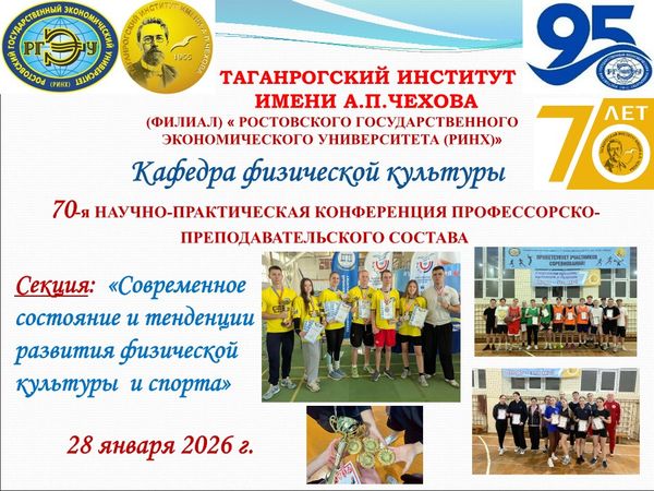 Новости все 29 января, 2026 О работе секции «Современное состояние и тенденции развития физической культуры и спорта» кафедры физической культуры28 января в рамках 70-й научно-практической конференции профессорско-преподавательского состава Таганрогского института имени А.П. Чехова (филиала) РГЭУ (РИНХ) кафедра физической культуры организовала работу секции «Современное состояние и тенденции развития физической культуры и спорта». Мероприятие открыла председатель секции, заведующая кафедрой физической культуры Елена Ивановна Кибенко, которая выступила с приветственным словом. На секции были представлены доклады, посвящённые методике преподавания физической культуры и спорта в вузе, а также организации учебно-тренировочных занятий во внеурочное время. Участники обсудили вопросы подготовки студентов к сдаче нормативов ВФСК «Готов к труду и обороне» (ГТО), проблемы развития современного студенческого спорта и организацию работы студенческого спортивного клуба. Особый интерес вызвали доклады, связанные с формированием профессионально значимых качеств у будущих педагогов по физической культуре и спорту, а также с методиками оценки состояния здоровья обучающихся. Конференция прошла продуктивно, все представленные темы были актуальны. Живое профессиональное общение позволило участникам обменяться опытом и получить ответы на интересующие вопросы. |
