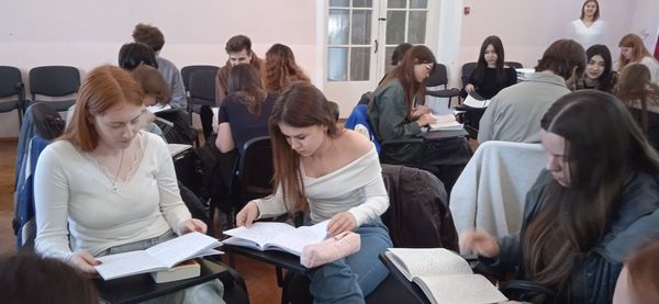 Новости все 29 апреля, 2026 Интерактивная игра, посвящённая творчеству А.С. Макаренко, для студентов факультета иностранных языков27 апреля 2026 года на факультете иностранных языков Таганрогского института имени А.П. Чехова состоялось интерактивное мероприятие, посвящённое педагогической системе Антона Семёновича Макаренко. Уже четвёртый год подряд студенты второго курса (группы ИЯ-321 и ИЯ-322) при поддержке профессора М.П. Целых разрабатывают сценарий и проводят интеллектуальную игру для первокурсников. Участники — студенты первого курса, разделённые на пять команд, — соревновались в трёх тематических этапах: викторина «Моя игра», решение педагогических ситуаций «Глазами Макаренко», а также разгадывание загадок и составление портрета педагога. Дополнительные баллы команды заработали в конкурсе капитанов. Жюри в составе студентов второго курса определило победителей. Первое место заняла команда «Тимур и его команда». Завершая встречу, ведущие Виктория Гасуха и Дарья Супрун подчеркнули, что идеи Макаренко остаются работающими принципами современной педагогики. Победители получили грамоты. Первокурсники проявили живой интерес к теме, высокую активность и готовность к диалогу, с увлечением выполняя все задания. В свою очередь, студенты второго курса приобрели ценный опыт организации и проведения воспитательного мероприятия, успешно применив теоретические знания на практике. Желаем будущим учителям новых успехов в изучении педагогики! |