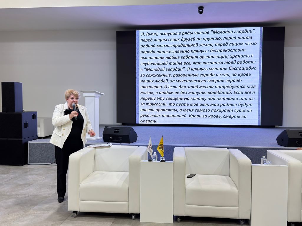 Новости все 30 марта, 2026 В музее «Самбекские высоты» студентам и школьникам представили фильм «Ангелы Победы»: связь поколений через призму историиНа базе народного военно-исторического музейного комплекса «Самбекские высоты» состоялась презентация документального фильма «Ангелы Победы» автора, режиссёра и педагога А. В. Родионовой. Картина, рассказывающая о подвиге 52 юных подпольщиков города Каменска-Шахтинского, была показана для студентов факультета истории и филологии и активистов «Движения Первых» Неклиновского района. Кинопоказ был организован при участии регионального отделения Российского военно-исторического общества в Ростовской области. Открывая мероприятие, директор Алексей Юрьевич Данильченко подчеркнул значимость подобных встреч в пространстве, где каждый экспонат хранит память о войне. Анна Вячеславовна Родионова лично посетила музей и обратилась к зрителям с приветственным словом, подчеркнув важность памяти о юных героях Великой Отечественной войны и преемственность поколений. В рамках визита она передала музею уникальное издание «Бессмертие молодогвардейцев Донбасса» с автографом автора-составителя В. Г. Кикнадзе, где опубликованы рассекреченные документы Центрального архива ФСБ России. В своём вступительном обращении к залу она объяснила, почему выбрала документальную форму для этой истории: «Моей главной задачей стал разговор с молодым поколением. История 52 пионеров Каменска долгое время оставалась в тени, хотя она неразрывно связана с “Молодой гвардией”. Я хотела, чтобы ребята увидели: героизм — не абстракция, он имеет имена, лица, родственные связи и живую память, которая передаётся из уст в уста». История расстрелянных детей Каменска — не далёкая архивная страница, она перекликается с «Ангелами Донбасса» — детьми, погибшими с 2014 года. Декан факультета истории и филологии Таганрогского института имени А. П. Чехова (филиала) РГЭУ (РИНХ), кандидат исторических наук В. А. Агеева выступила в качестве эксперта кинопоказа. В своём выступлении она подвела зрителей к смысловому ядру фильма. Опираясь на исторические источники, Валентина Анатольевна провела параллели между событиями, показанными на экране, и борьбой юных подпольщиков Таганрога, Неклиновского района и Ростова-на-Дону с немецко-фашистскими захватчиками, обратила внимание на связь пионеров-героев Каменска с «Молодой гвардией» Донбасса и символичные параллели, проведённые в фильме с противостоянием неонацизму сегодня в рамках СВО. Вступительная речь В. А. Агеевой задала высокий эмоциональный и аналитический тон, позволив аудитории воспринимать киноповествование в широком контексте молодёжного подпольного движения и современных задач сохранения исторической памяти и защиты суверенитета РФ. Председатель Неклиновского отделения движения «Движение Первых» Н. Рубан поделилась опытом ребят, которые сохраняют память о героях, ухаживают за воинскими захоронениями и помогают воинам СВО. Далее состоялся показ фильма «Ангелы Победы». После завершения просмотра встреча продолжилась в формате диалога: зрители задавали вопросы режиссёру. Анна Вячеславовна Родионова подробно остановилась на истории создания картины, которая стала результатом многомесячной поисковой работы. Отвечая на вопросы, она рассказала о том, как шла 